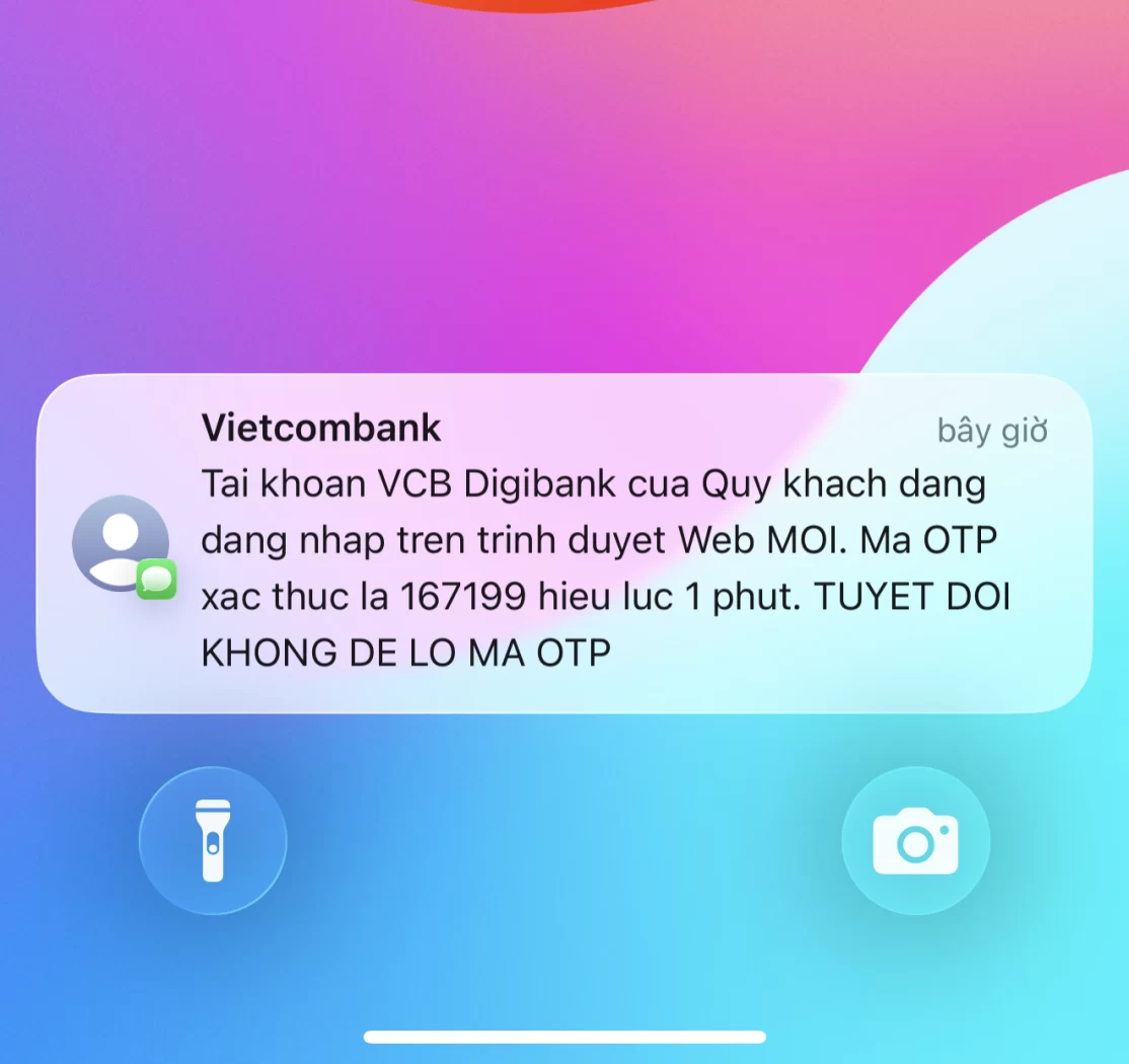 | Không nhận được OTP | Kiểm tra số điện thoại đăng ký với VCB, thử gửi lại |